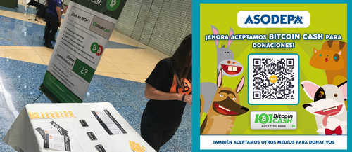 (Right) Oscar and his friends promoting bitcoin cash at Sambil mall in Maracaibo city. (Left) Oscar also got the animal shelter in Maracaibo to accept bitcoin cash for donations last year.
