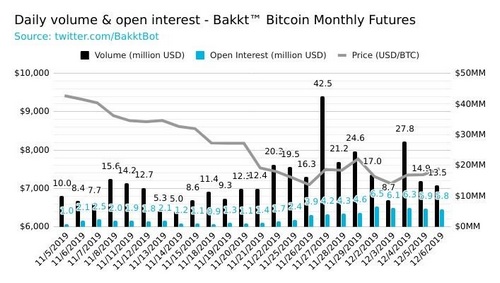 Despite a slow start in September, Bakkt’s futures trading volume soon picked up as BTC’s price plummeted. On Nov. 27, the platform boasted that a record high was set, tweeting: