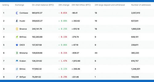 Additionally, the numbers from Bituniverse can also be cross-referenced with data from Chain.info’s crypto exchange reserve list. Chain.info’s data is slightly different, showing that Coinbase holds 983,000 BTC but most of the data is fairly consistent with the findings from the Bituniverse application. Figures indicate that Huobi is the second-largest cryptocurrency exchange by reserve count with 462,000 BTC ($3.8 billion), 1.8 million ETH, and a large number of USDT as well.