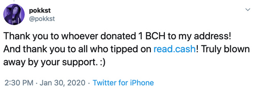 In April 2019, CC added Simple Ledger Protocol (SLP) token support. The following month, Pokkst implemented a new feature to CC that allows people to send bitcoin cash through a text message. Pokkst is also known for his work on the platform Tipbitcoin.cash, a tool that gives anyone the ability to tip their favorite streamer on Twitch using bitcoin cash. In addition to all the applications and wallets, the developer also worked on bitcoincashj, a Java implementation for Bitcoin Cash.