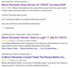 Even supposed review sites showing up as top Google search results are part of scams like Bitcoin Revolution, pretending to be objective overviews, but actually redirecting users to the scam.
