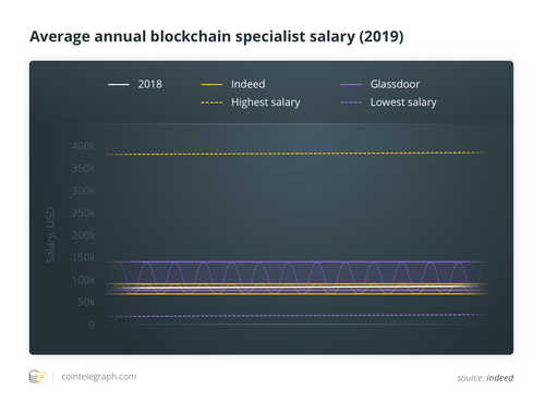 Judging by the consolidated data collected by Glassdoor and Indeed, blockchain specialists have the same salary as in the previous year.