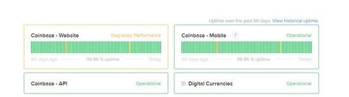 Investigating – We’re investigating performance issues on Coinbase.com and are working to resolve them. We will update with more information as it becomes available.
