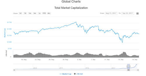 Of course, this came at a time when the rest of the market was suffering, as well, with the exception of a few outliers. Ripple was one of these exceptions, surging to a new all time high yesterday of $2.84. This situation calls to mind Ethereum’s gaining on Bitcoin back in June, as Ripple’s current capitalization is $90bln, nearly half of Bitcoin’s own. Difference being, of course, Ripple is one of the only currencies actually performing well right now, while Ethereum’s surge came with a rising tide of alt-coin prices.