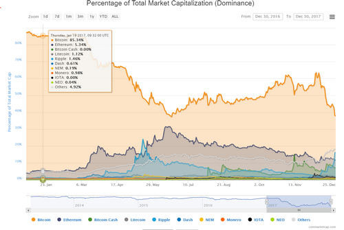 So keep an eye on Bitcoin’s market dominance heading into the new year, and don’t despair too much over your sickly portfolio–it could be much worse.