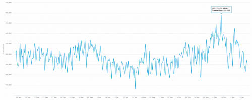 At the time, the dominance index of bitcoin rose to 38 percent, recovering from its all-time low at 32 percent. Over the past week, the dominance index of bitcoin has fallen from 38 percent to 34 percent, and the daily transaction volume of bitcoin has more than halved, from 490,000 transactions to 242,000 transactions.
