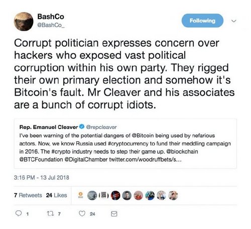 Rep. Emanuel Cleaver’s tweet, as might be expected, drew swift condemnation from members of the crypto community.