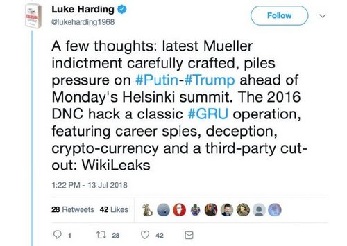 Another interpretation: that today’s indictment was intended to influence an upcoming meeting between Trump and Russian president Vladimir Putin.