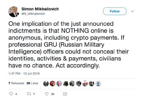 An investor named Simon Mikhailovich noted that the indictment and the fact that the FBI was able to document virtually every step of the perpetrators should remind all investors that their activities on blockchain are easily traceable and not hidden from view.