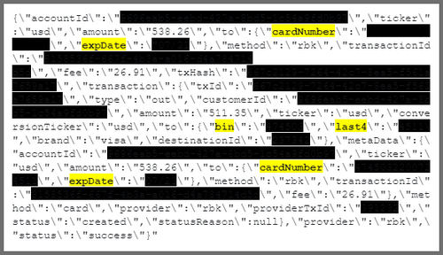 The first part of that statement flies in the face of the researchers’ findings, however. Rotem and Locar provided screengrabs of the data (with portions hidden to conceal user data) that seem to back up the claim that they were able to find CCVs (top image) and card numbers (bottom image) in the logs.