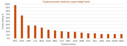 The top cryptocurrencies traded by crypto hedge funds surveyed by PWC and Elwood Asset Management. Source by PWC and Elwood.