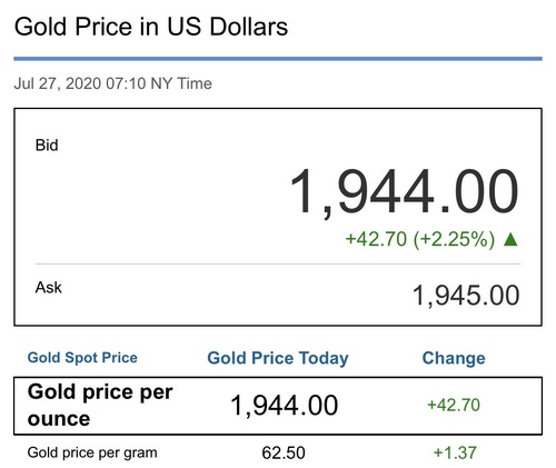 The price of gold spiked over 42% during the last 24 hours, and touched an all-time high (ATH) at $1,944 per ounce or $62.50 per gram. So far, gold has gained around 27% in 2020 and it went above the ATH set in 2011, which was $1,921 per ounce. Economists and analysts think that gold will soon be well above the $2K range amid a gloomy global economy.