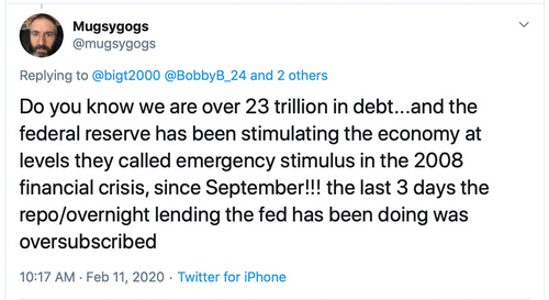 Henrich and many others have been critical of central banks like the Federal Reserve because they believe the funds only go to private hands and create a foundation for the current 1%. Henrich even helped prove the point in a further tweet, when he said: “Last week … Fed: ‘We’ll reduce repo next week,’ Apple AAPL: ‘We’ll miss revenue,’ Fed: ‘Here’s $78.5B in repo.’”