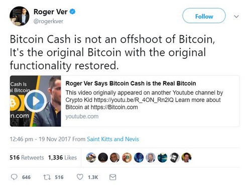 Bitcoin fights for its name. Bitcoin.com owner, Roger Ver, claims that Bitcoin Cash is the real Bitcoin. Is it? What are the implications of this battle for BTC’s name? Source: Twitter