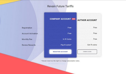Pricing page is the new section of the Dashboard with the information regarding subscription. Revain isn’t announcing prices just yet, but everyone can try all the functionality that goes along with the subscription to Revain’s beta version completely for free. Projects can test what their pages will look like after launch of the project’s account while users can create their own fake company and try the very same functions.