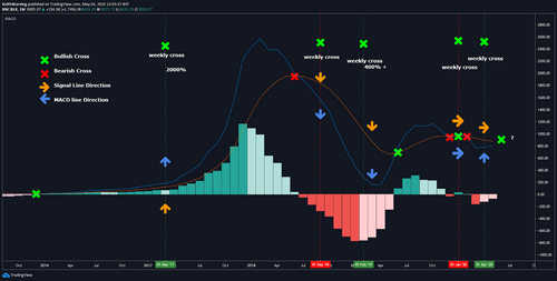 Last week, I highlighted the significance that the moving average divergence convergence (MACD) Indicator has on the price of Bitcoin when it crosses bullishly on the weekly timeframe.