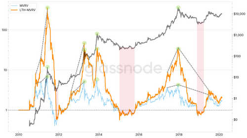 MVRV (blue) and LTH-MVRV (orange).