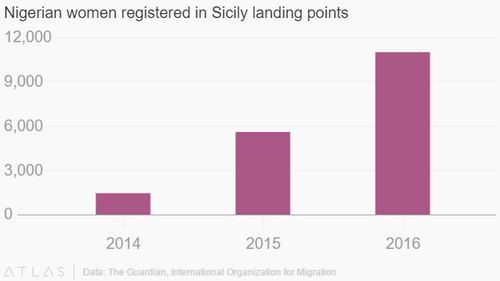 Last year, Nigeria accounted for the highest number of migrant arrivals by sea in Italy, surpassing Eritrea and, in between 2014 and 2016, the number of Nigerian women registered as arrivals in Italy has grown almost ten-fold.