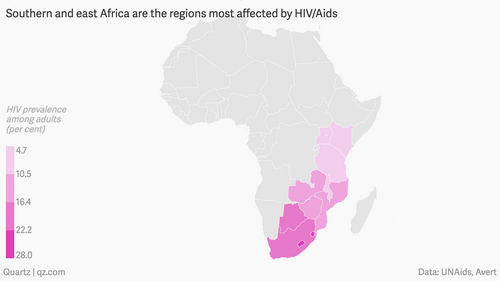 East and southern Africa still have the highest number of people living with HIV/AIDS in the world. The region is home to 6.2% of the world’s population but has over half of the global HIV-positive population, according to Avert. While 790,000 new infections in 2016 are still worryingly high, it is an improvement from the previous decade: HIV infections have decreased by 24% among adults and 56% among children.