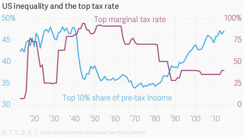 So, what are lawmakers doing? Look at that first chart again. Today, the top 10% of earners in the United States earn 47% of all income in the country. When the US amended the constitution to create a permanent income tax in 1913, the top 10% were earning 42% of all income.