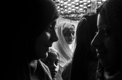 Children and grandchildren of the Indian Badla artisans straighten the Mukaish fabric after washing them. Deorhi Agha Meer, Chandi Khana, Old Lucknow, Uttar Pradesh. (Taha Ahmad)