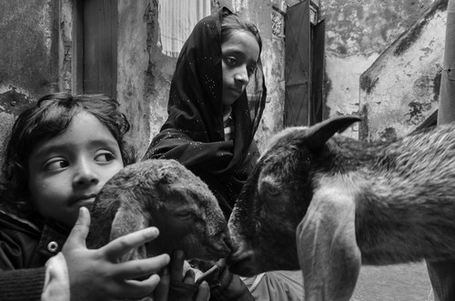 Taiba and Umrah with their cattle at their house in Deorhi Agha Meer, Chandi Khana, Old Lucknow. (Taha Ahmad)