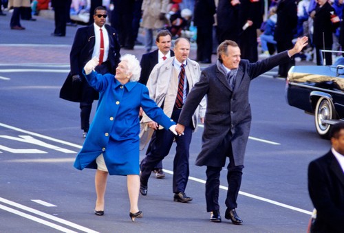 A few years later, it was Barbara Bush who was White House-bound. Here she is on her husband’s inauguration day in 1989. (CNP /MediaPunch/IPX/Ron Sachs)