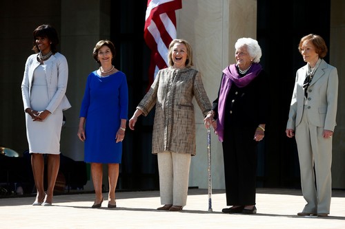 Barbara Bush stands with other members of the exclusive group of living US first ladies in 2013. (AP Photo/Charles Dharapak)
