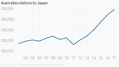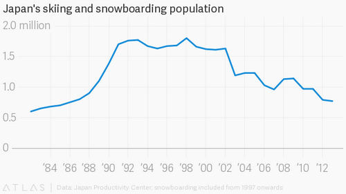 The skiing revival is also key to the Japanese government’s plan to boost local economies, as populations in small towns dwindle. The country hopes to capitalize on knowledge of its “quality snow” and easy access to ski resorts to ride a winter sports boom in Asia, with South Korea recently hosting the Winter Olympics and China due to host the next one in 2022, according to a recent policy paper (link in Japanese).