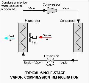 A fridge works by using a refrigerant (usually a chemical) in a closed-loop system. The refrigerant starts its life as a gas (or vapor), and electricity is used to run a compressor and condense the gas into a liquid. Physics dictates that when gases are compressed, they release heat. In a refrigerator, that heat is directed outside (usually into your kitchen). The liquid then runs through an expansion valve, where it becomes gas again, and that expansion absorbs heat. In the process, this cools the inside of the refrigerator. The now-warm refrigerant gas is then sent back into the compressor and the cycle repeats.
