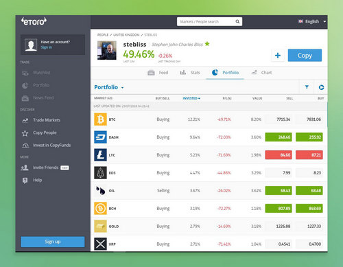 Bliss – whose eToro username is stebliss – enjoyed incredible gains of 893.16 percent in 2017, mostly thanks to the sensational crypto bull run at the end of the year. His unique story gained the interest of the British national press in early 2018.