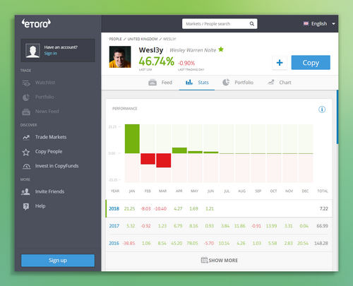 Nolte joined eToro in March 2015 and became a PI – a programme that allows top traders to build their own financial business and earn a 2 percent management fee – less than two years later, in January 2017.