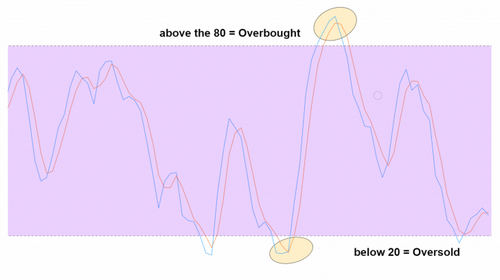 To start with, the indicator can range from 0 to 100. The area above 80 represents overbought conditions, and the area below 20 indicates oversold conditions.