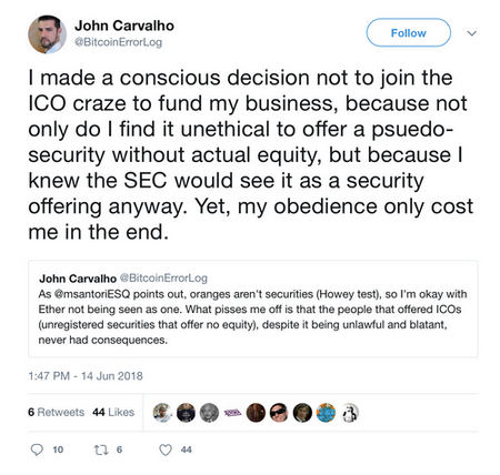 «The SEC has just abdicated responsibility for enforcing securities laws in the United States,» or so wrote blockchain entrepreneur and U.K. lawyer Preston Byrne.