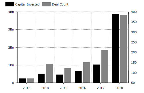 Based on data from Pitchbook, the report indicates that number of deals also nearly doubled this year.