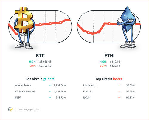 The top three altcoin gainers of the week are Indorse Token, ICE ROCK MINING and 4NEW. The top three altcoin losers of the week are dietbitcoin, Freicoin and ILCoin.