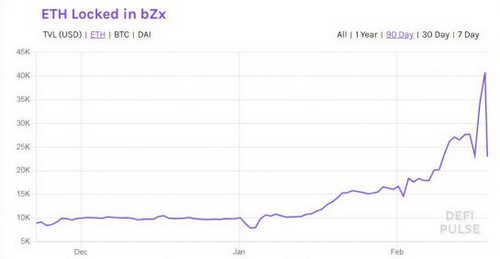 The total amount of ether locked in bZx lending contracts has nearly halved from 40,000 ETH (~$10.7 million) to 23,000 ETH (~$6.1 million) since the exploit took place, according to statistics site DeFi Pulse.