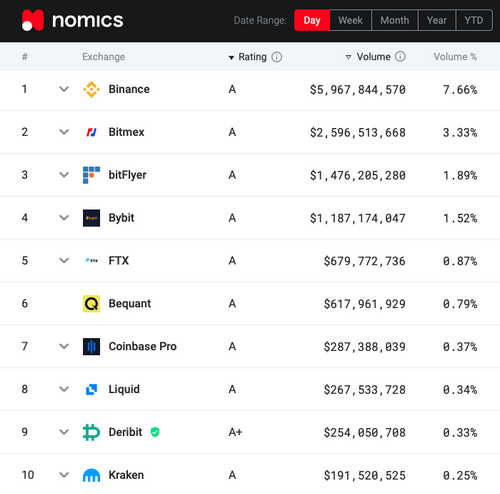 Among the world’s largest cryptocurrency exchanges ranked by trading volume, only two, Coinbase Pro and Kraken, are based in the U.S.