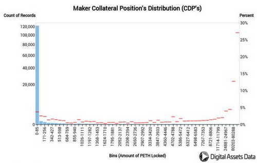 “The accounts in the lower tier of vaults (lowest balances) appear to be actual adopters with more than 1 ETH being locked into the accounts”’, according to Anderson. «As Maker continues to grow, we will see how these distributions play out and if there is more adoption within the group of smaller account balances.»