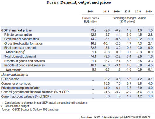 The OECD’s optimistic forecast is almost in line with 2-2.1 percent official government’s target, which was recently undermined by the disappointing third-quarter GDP numbers and industrial output stumbling in the fall.