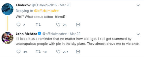 However, Skycoin seems to be the first company that decided to stay away from the ‘crypto baron’. Judging by comments of other Skycoin team members, it seems that the company is afraid to be harmed by McAfee’s controversial reputation.