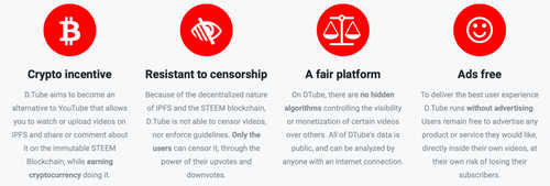 Steemit-associated Dtube (warning: some Dtube thumbnail images may be NSFW) claims to be “the first crypto-decentralized video platform, built on top of the STEEM Blockchain and the IPFS peer-to-peer network.” The Interplanetary File System (IPFS) and Steem blockchain are leveraged so that “D.Tube is not able to censor videos, nor enforce guidelines.” Rewards and monetization are made possible via Steem, Dtube Coin, and others. While still growing and viewed as very promising by many, periodic issues with the IPFS protocol struggling to accommodate user requests has been noted.
