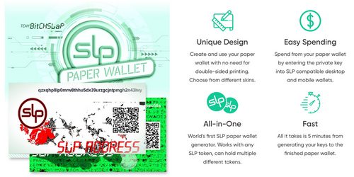 The SLP wallet generator was created at the first annual SLP Hackathon last year. The second-place team, ‘Bitchslap,’ created a customizable, client-side SLP wallet generator.